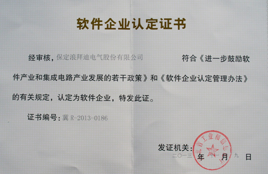 根据《软件企业认定管理办法》、《软件产品管理办法》,河北省工业和信息化厅认定我公司为软件企业,继续纳入相关行业管理。