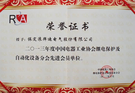 我公司自2012年以来市场及技术工作业绩突出,并且积极支持行业协会的工作,因此获得中国电器工业协会颁发的继电保护及自动化装置行业优秀会员证书。