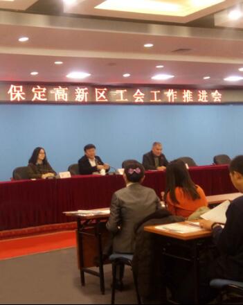 11月23日,保定高新区工会工作推进会在高新区管委会东配楼四楼顺利召开,高区党群部陈树军部长作重要讲话,市总工会领导代表段立军、李伟莅临指导工作。