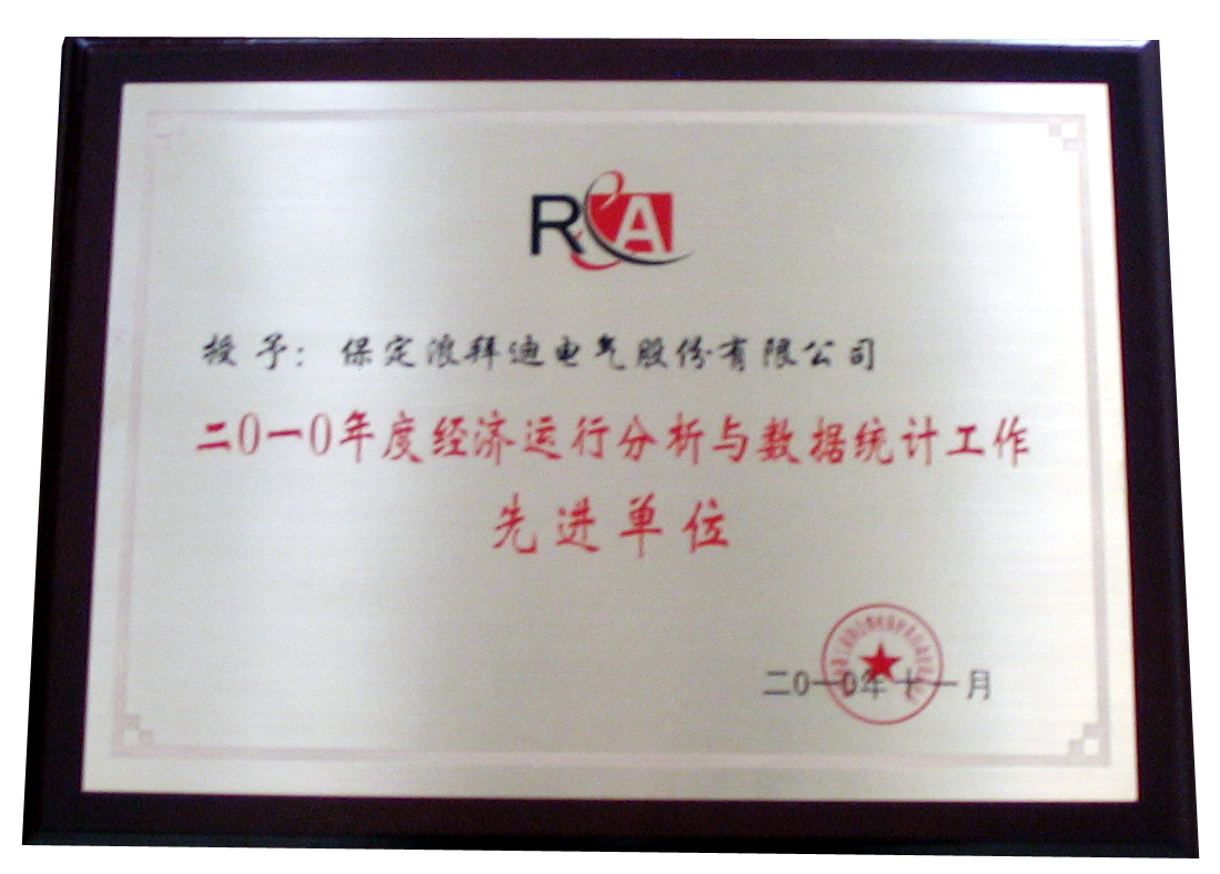 我公司获电器工业协会颁发的统计工作先进集体牌匾